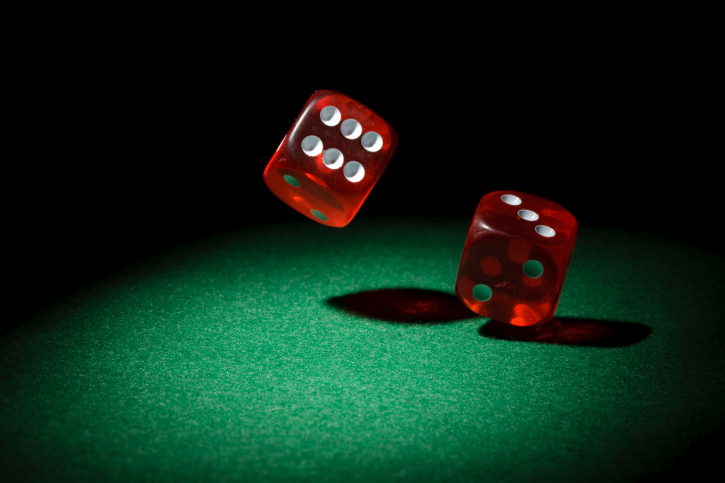 The shooter begins the game by throwing two dice to the opposite of of the Craps table.